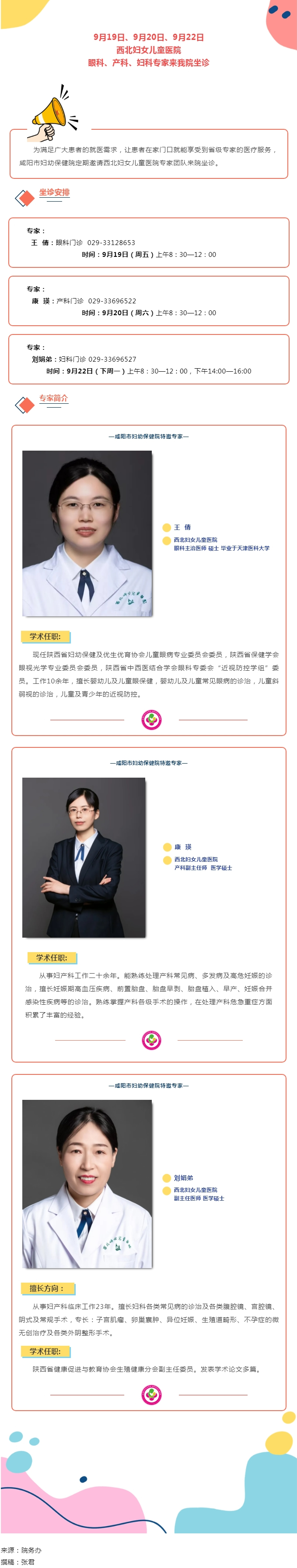 9月19日、9月20日、9月22日西北婦女兒童醫(yī)院眼科、產(chǎn)科、婦科專家來(lái)我院坐診