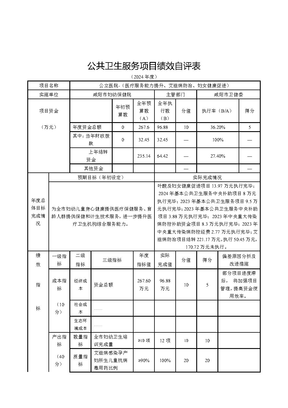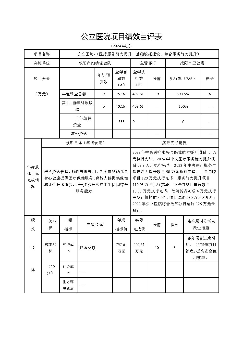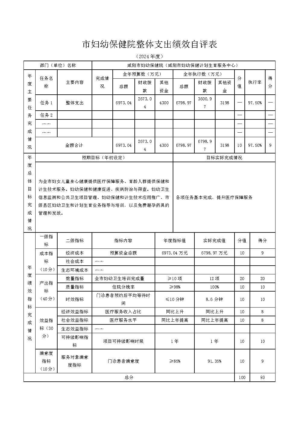 咸陽市婦幼保健院2024年度部門(單位)決算公開說明