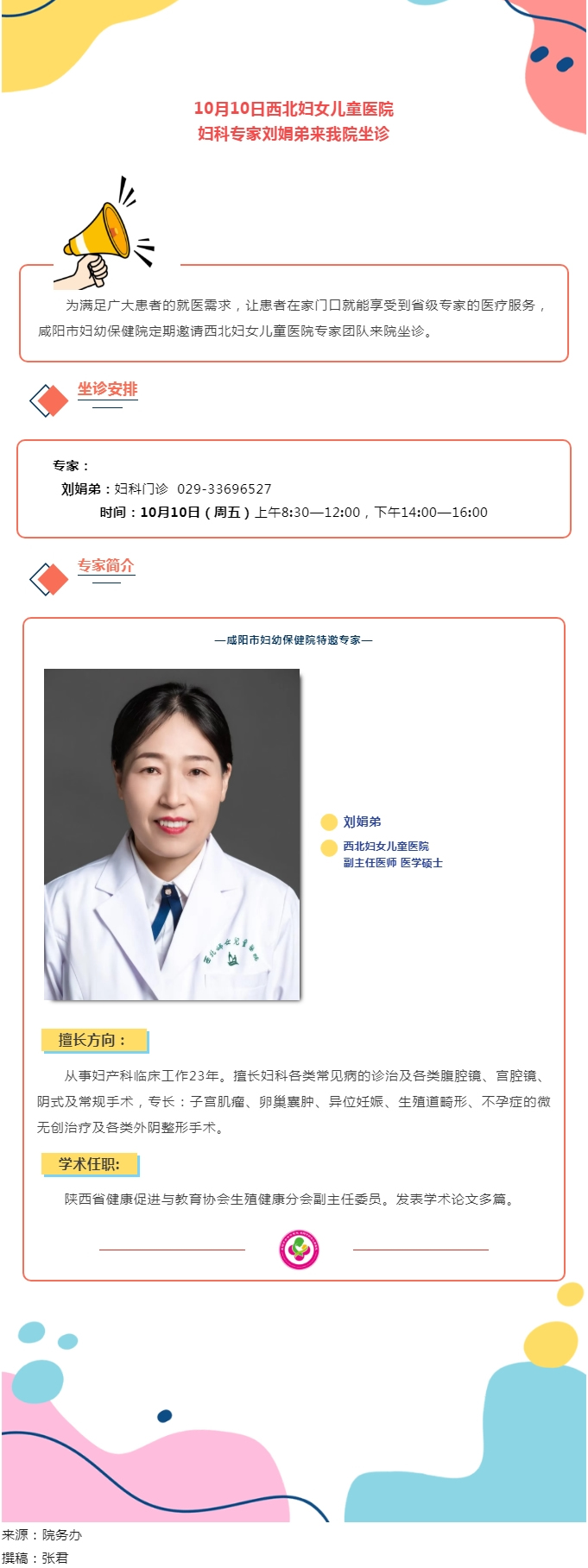 10月10日西北婦女兒童醫(yī)院婦科專家劉娟弟來我院坐診
