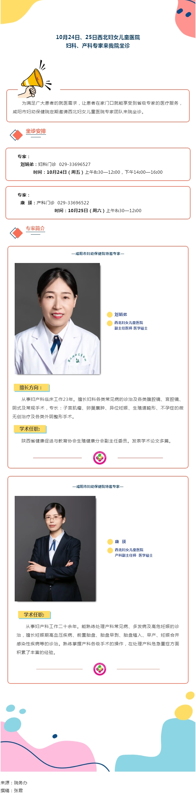 10月24日、25日西北婦女兒童醫(yī)院婦科、產(chǎn)科專家來(lái)我院坐診