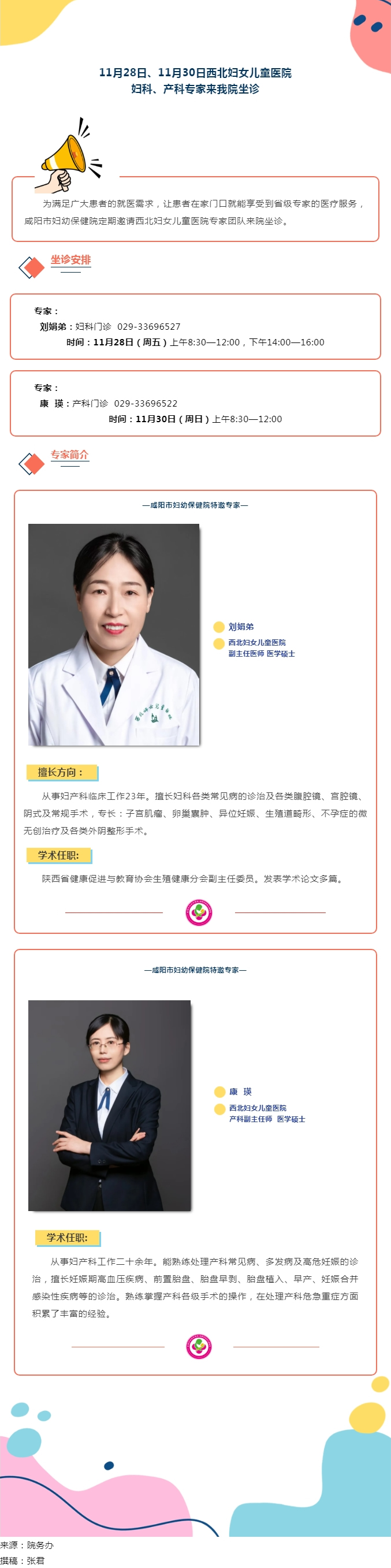 11月28日、11月30日西北婦女兒童醫(yī)院婦科、產(chǎn)科專家來我院坐診