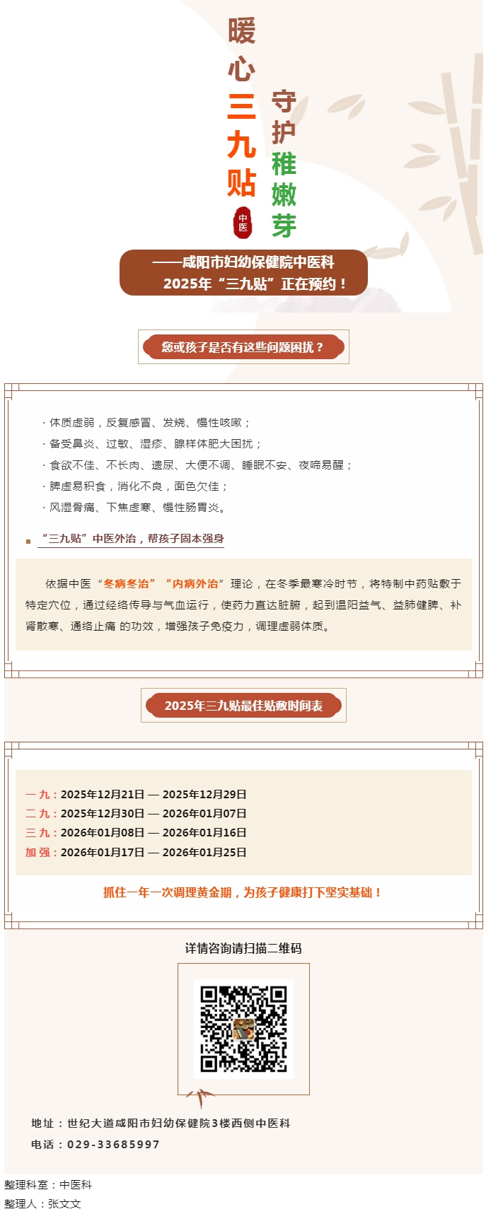 【暖心三九貼 守護(hù)稚嫩芽】——咸陽市婦幼保健院中醫(yī)科2025年“三九貼”正在預(yù)約!
